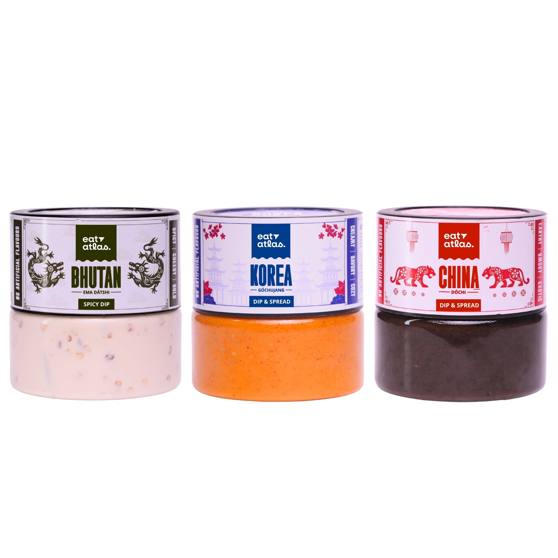 The Perfect Trio: Gochujang, Ema Datshi & Dochi | Korean Dip, Bhutanese Chilly Dip & China Black Bean Dip Combo | International flavors | Ready-to-Eat (Pack of 3) (200gm each)